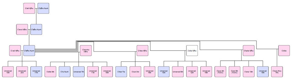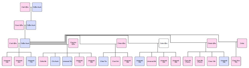 --C'ellia [non-mate] (1 child)Child Birth Order: (C'kyho Nunh {current} Only)1- C'ilo (M)